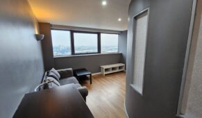🍳 KITCHEN - At the rear is the modern kitchen, with lino flooring and white and grey splashback tiling. White gloss cabinets and black worktops provide plenty of storage and preparation space, alongside an integrated hob/oven, extractor fan, stainless steel sink and space for your own appliances. A large window fills the room with natural light.