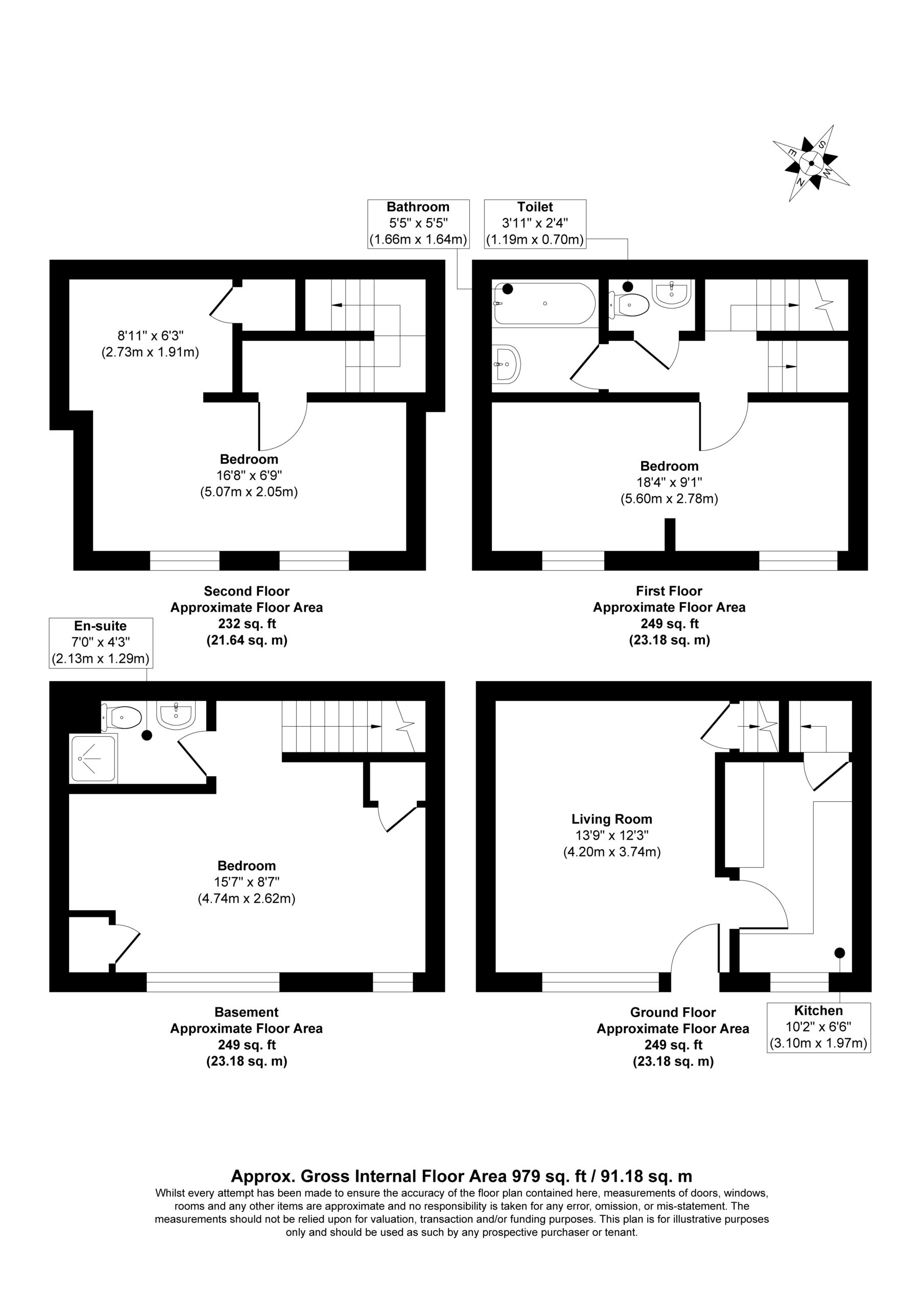 Bathroom 1: An en suite to the basement bedroom with a cubicle shower, toilet and sink.